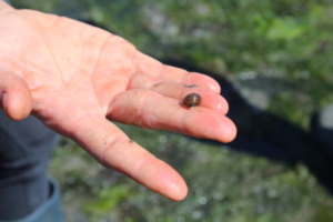 “Tijdens de monitoringsdagen gaan we op pad waar het zeegras wordt geplant. Ook al was het eb, onze voeten raakten doordrenkt van een mengsel van modder en zeewater, soms erin gezogen, nauwelijks in staat om te bewegen. We hebben gemeten hoeveel kernen er nog aanwezig waren, controleerden of er bloemen op zaten en telden het aantal scheuten. Naast observaties van het zeegras hebben we ook gekeken naar de omgeving en andere factoren, zoals de aanwezigheid van zeepieren die in het sediment leven en die de groei van zeegras kunnen beïnvloeden. Op sommige locaties deed het zeegras het niet zo goed, wat in eerste instantie jammer was, maar voor het herstel in zijn geheel zal dit een waardevol inzicht zijn in welke locaties geschikt zijn voor toekomstige inspanningen voor zeegrasherstel en welke niet. Op sommige plekken zijn de kernen al aan het uitbreiden.